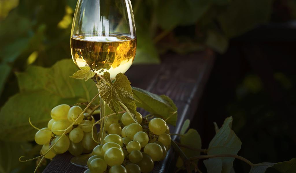 Обои Белое вино на столе с сыром, виноградом и орехами