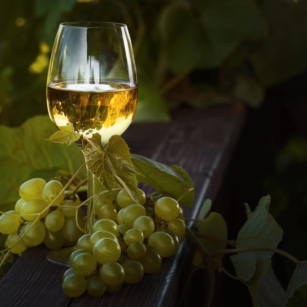 Обои Белое вино на столе с сыром, колбасой и виноградом