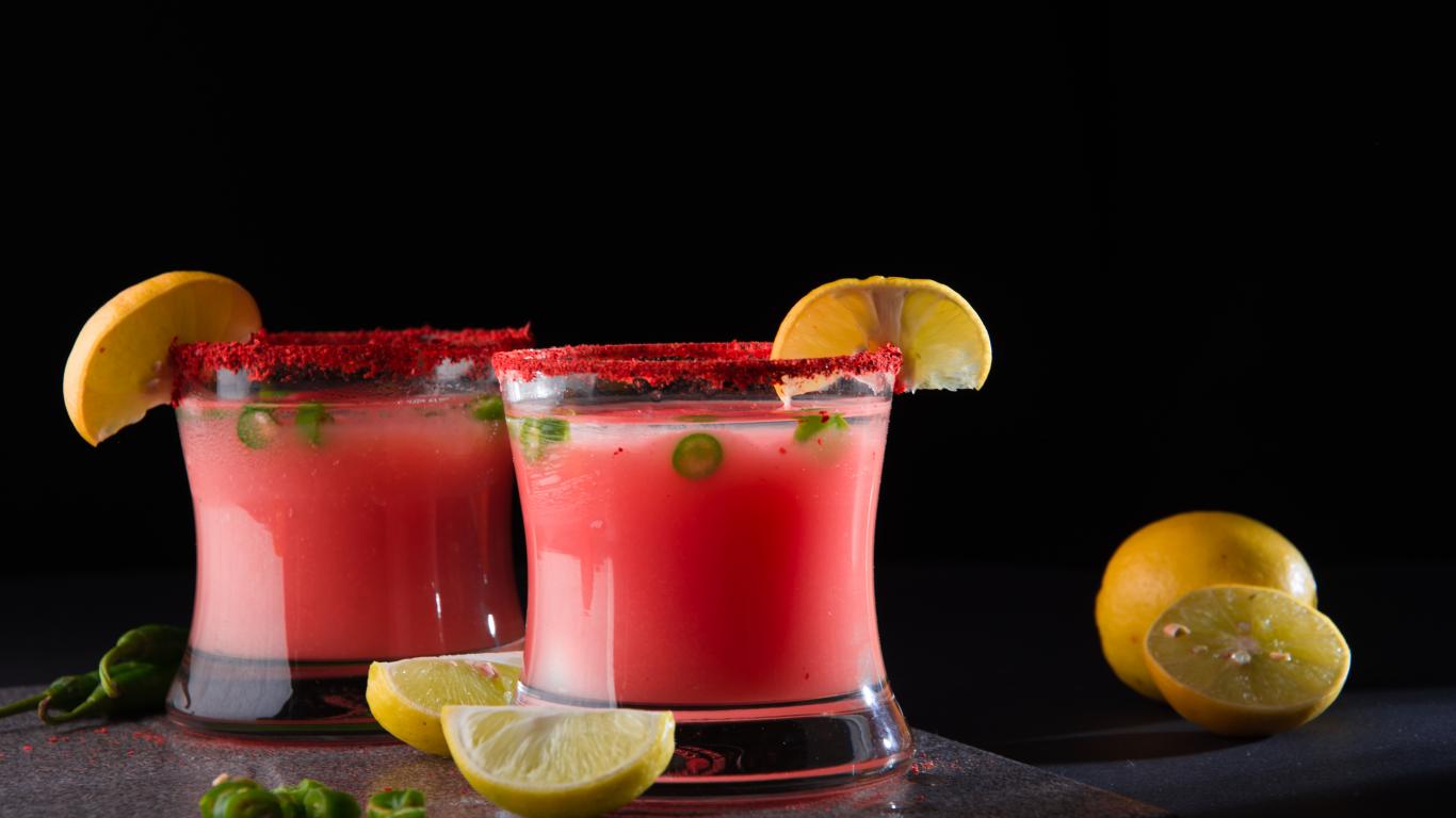 Обои Два стакана с коктейлем на черном фоне с лимоном