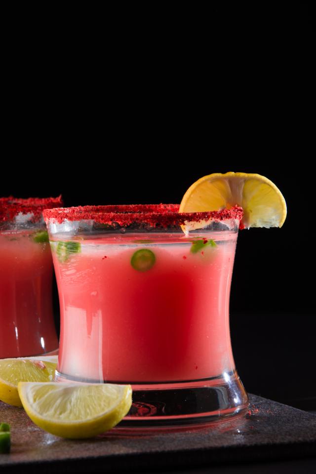Обои Два стакана с коктейлем на черном фоне с лимоном