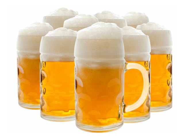 Обои Много бокалов пенного пива на белом фоне
