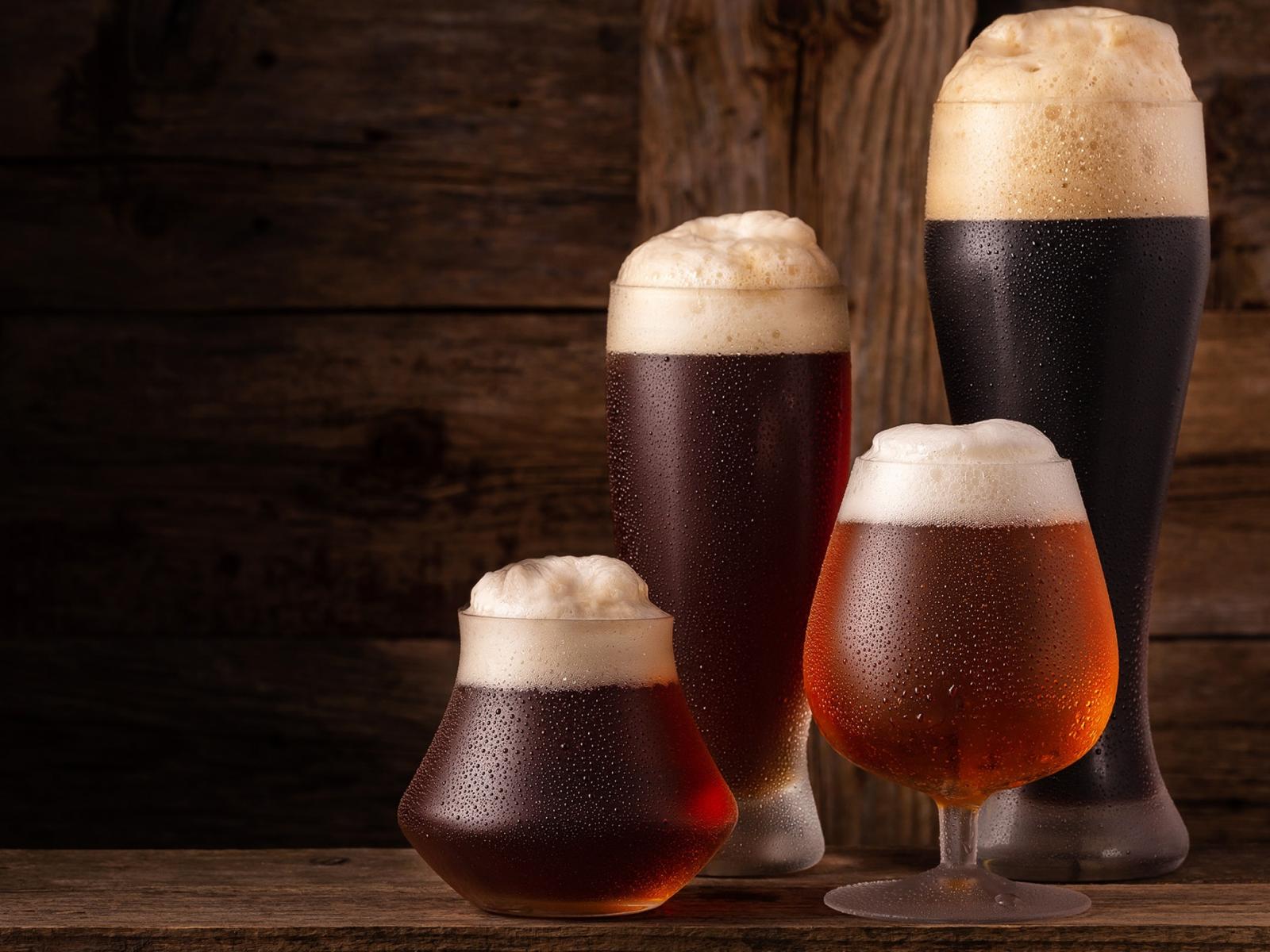 Обои Много бокалов холодного пенного пива на столе