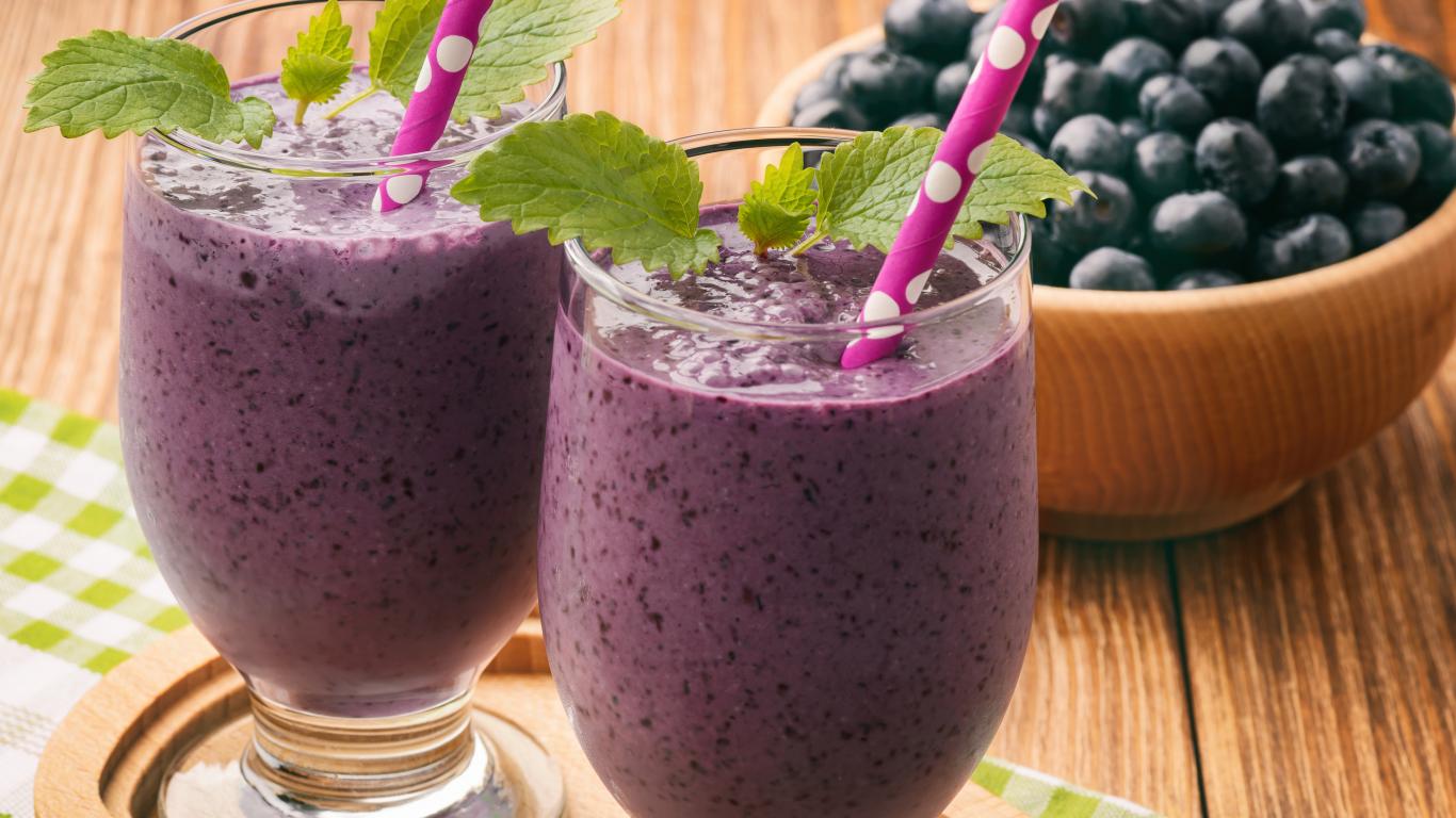 Обои Черничное смузи в стаканах с трубочками