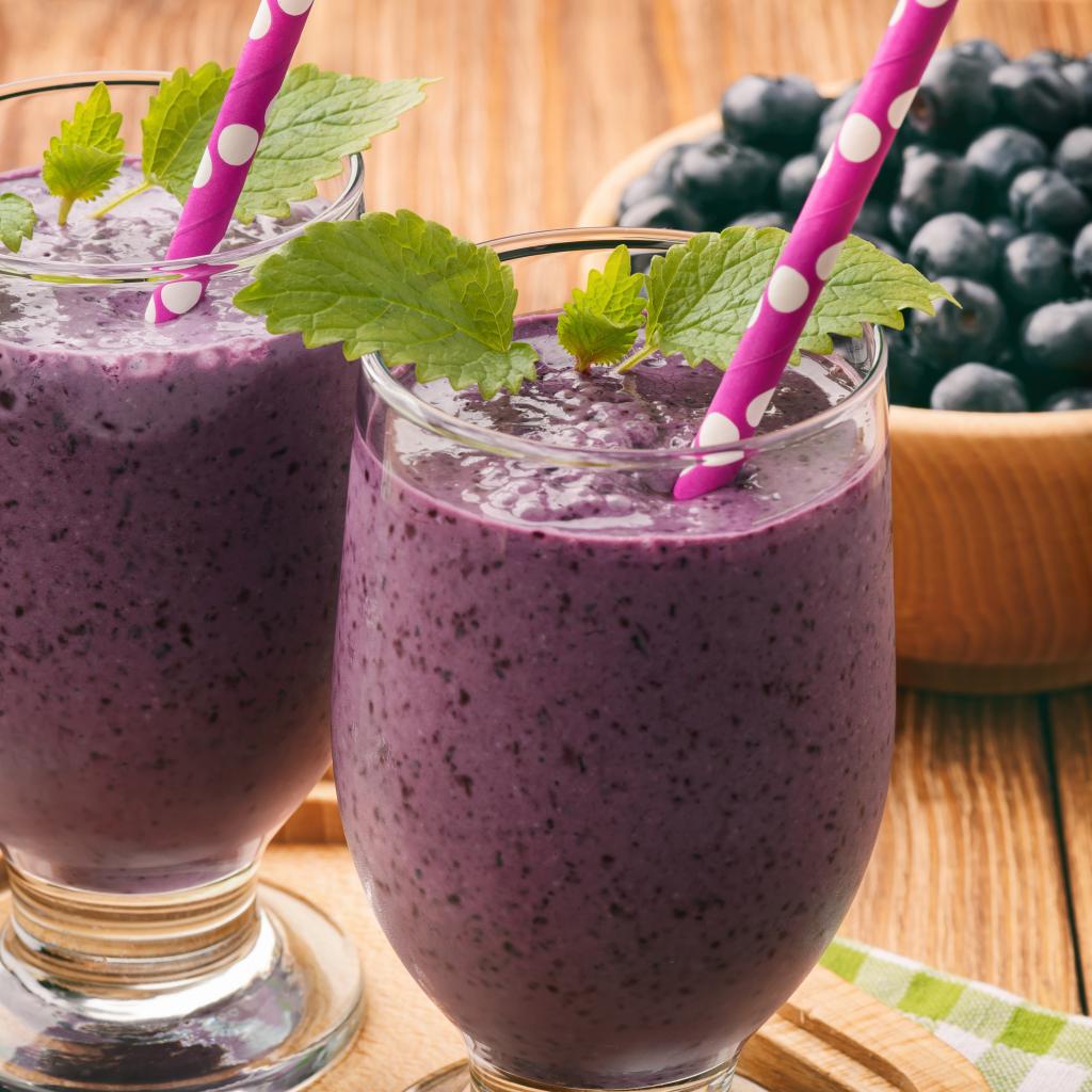 Обои Черничное смузи в стаканах с трубочками