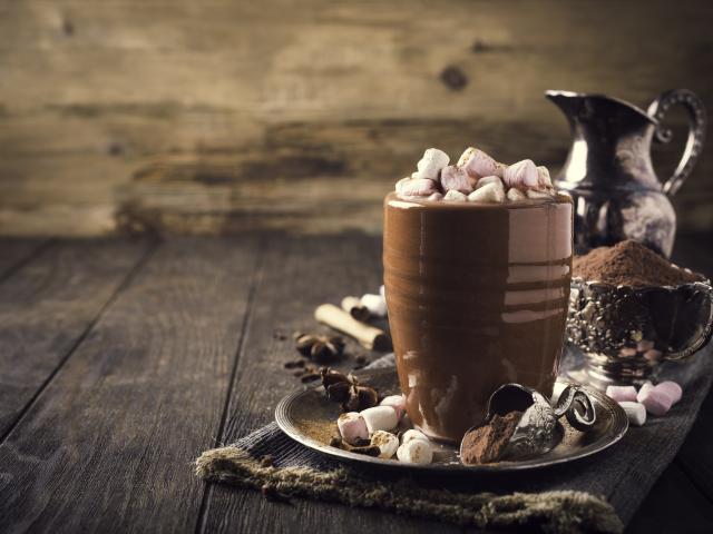 Обои Горячий какао с маршмеллоу на столе