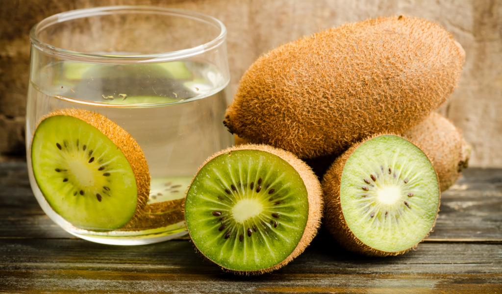 » Обои Вода с кусочками киви на столе
