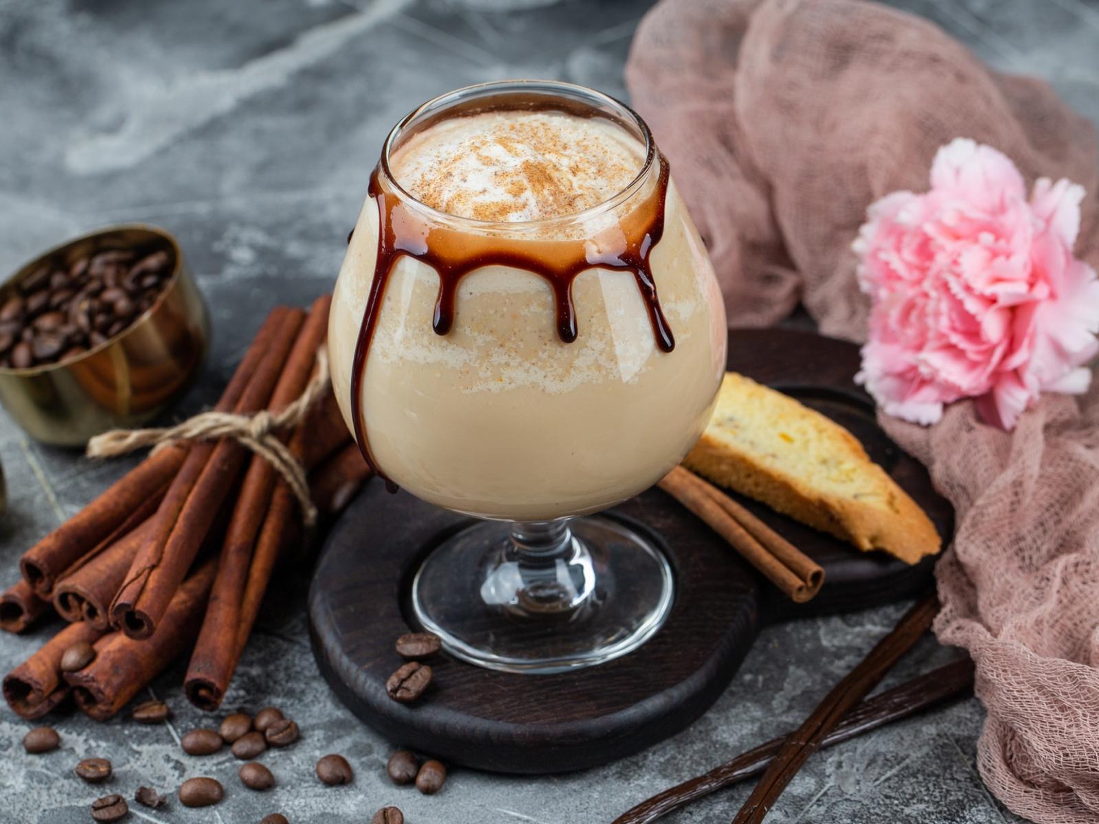 Обои Вкусный кофейный напиток на столе с корицей и гвоздикой