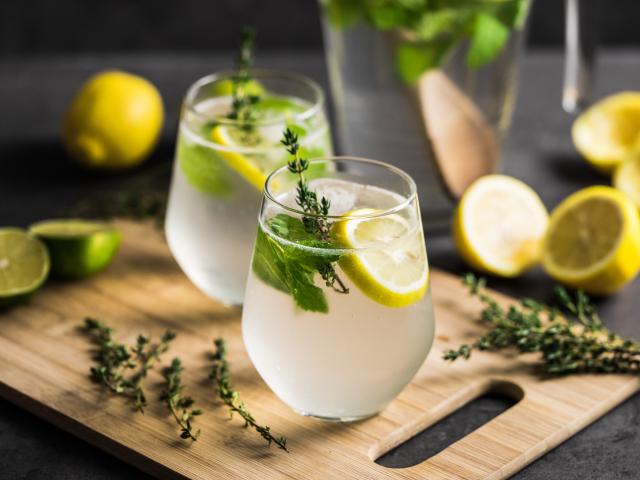 Обои Два стакана мохито на столе с лимоном