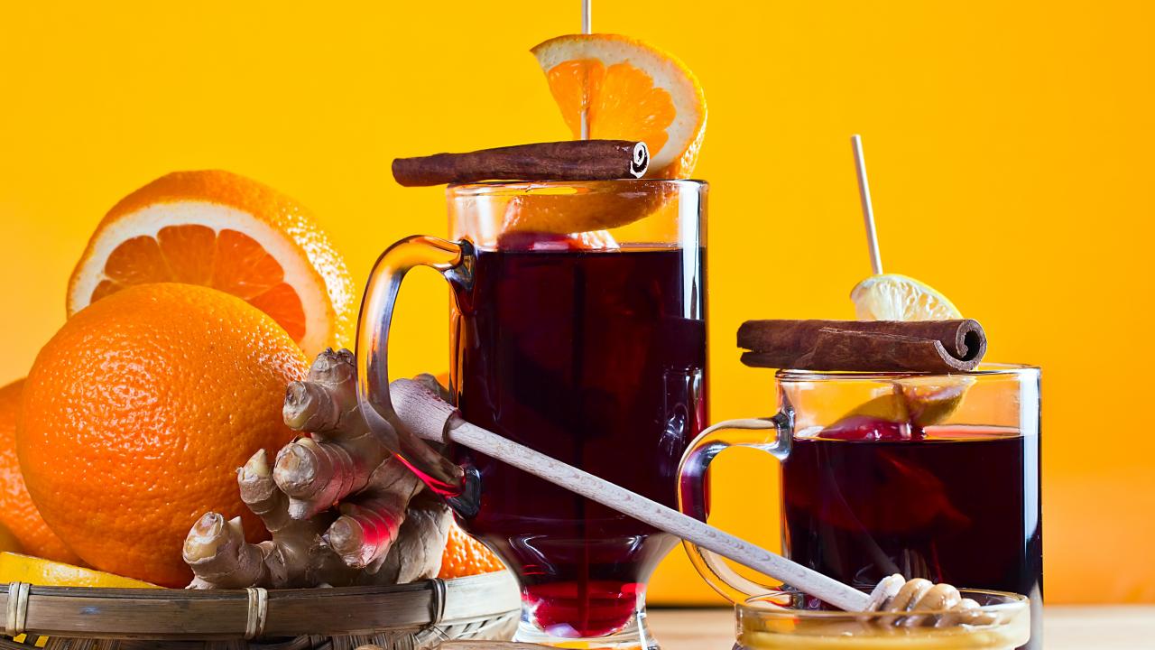 Обои Глинтвейн на столе с имбирем, апельсино и специями