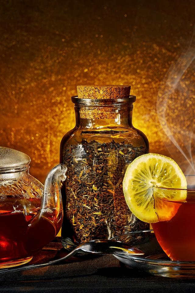 Обои Стеклянный чайник с чашкой на столе с заваркой