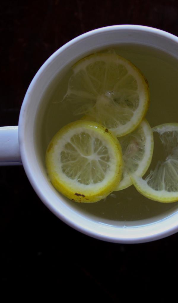 Обои Зеленый чай с лимоном на черном фоне
