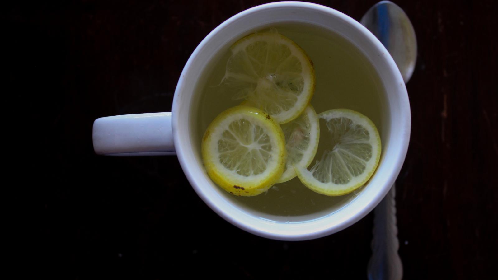 Обои Зеленый чай с лимоном на черном фоне