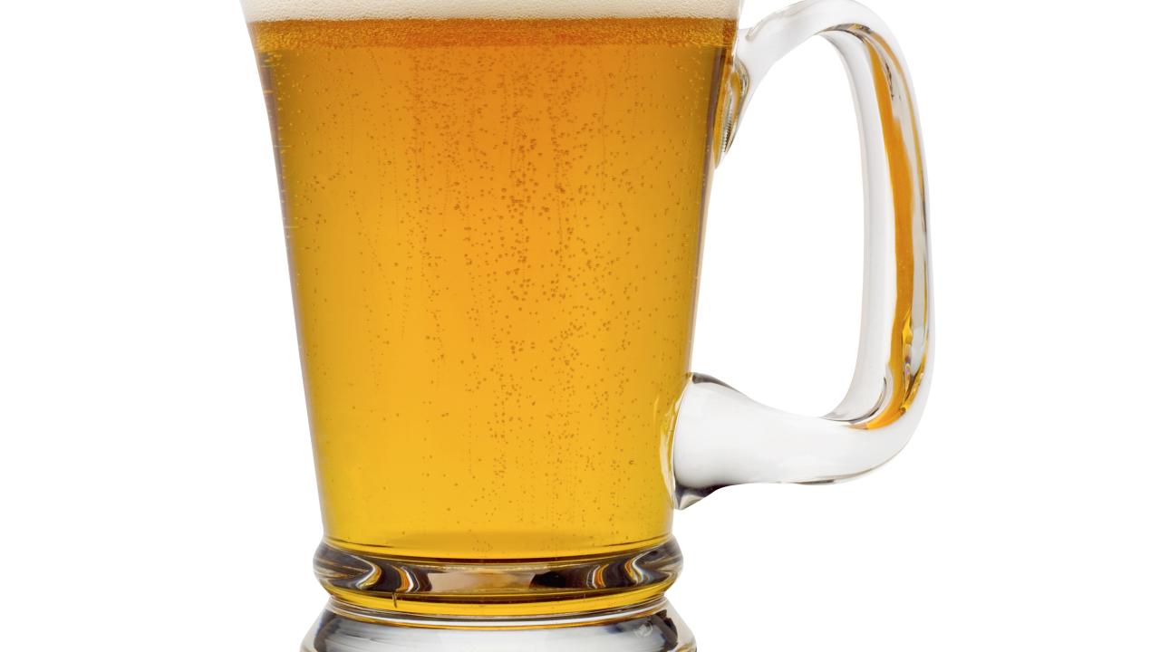 Обои Бокал пенного пива на белом фоне