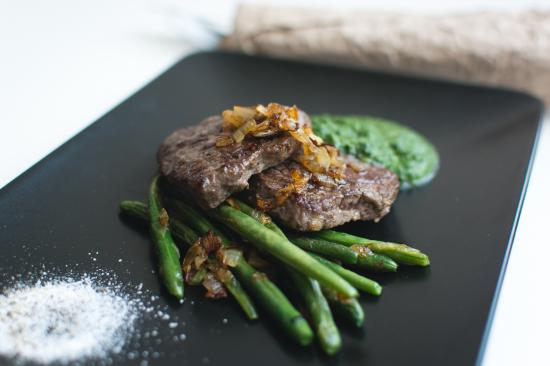 Обои Сочная отбивная с зеленой спаржей и соусом