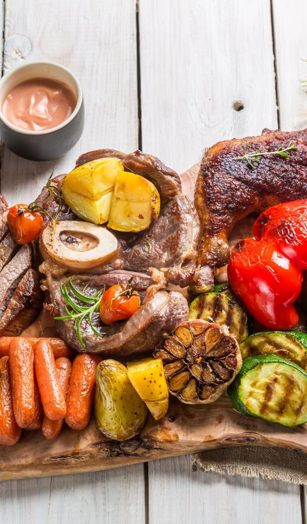 Обои Аппетитное сочное запеченное мясо с овощами