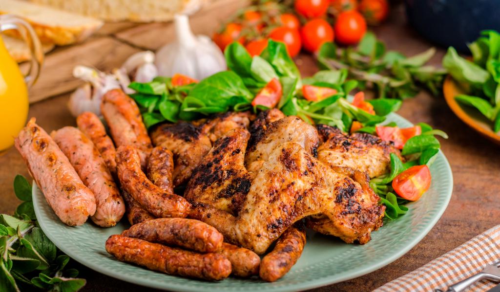 Обои Жареные куриные крылышки с сосисками