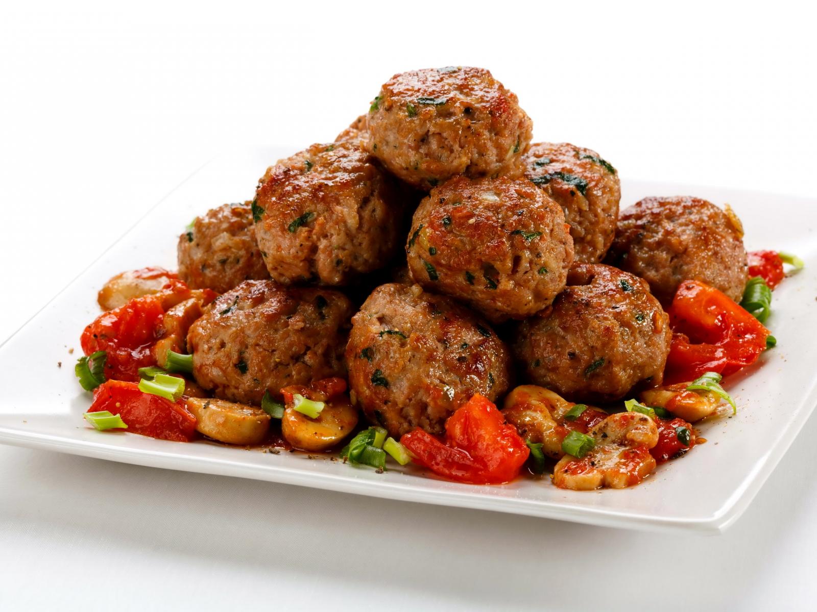 Обои Котлеты с овощами на белой тарелке