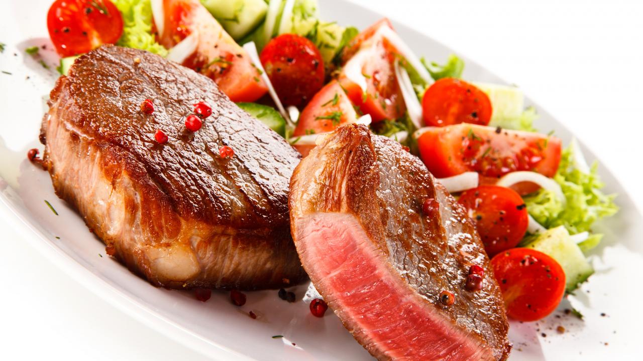 Обои Запеченное мясо на тарелке с салатом