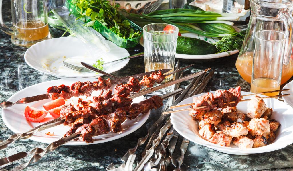 Обои Аппетитный шашлык на шампурах на столе