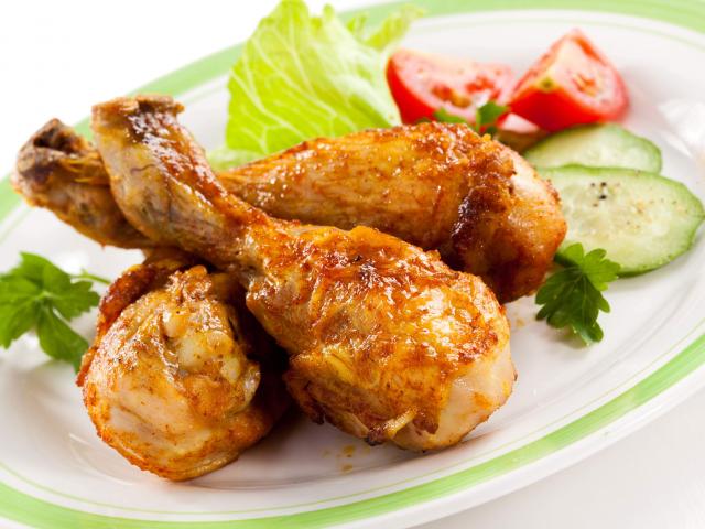 Обои Зажареные куриные ножки на тарелке с овощами