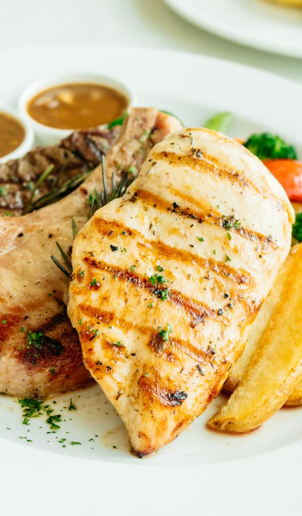 Обои Запеченное мясо гриль на тарелке с овощами