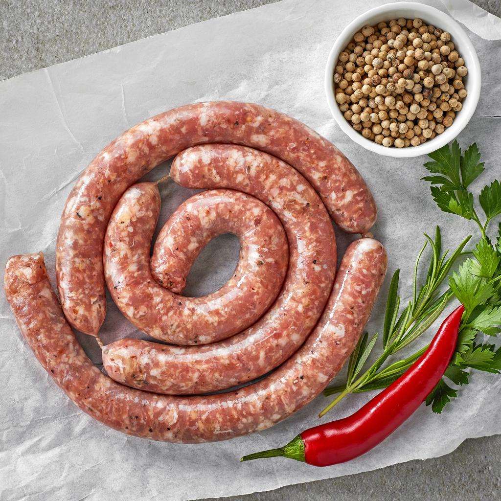 » Обои Домашняя колбаса на столе с зеленью и перцем