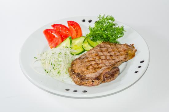 Обои Кусок курицы с овощами на белой тарелке
