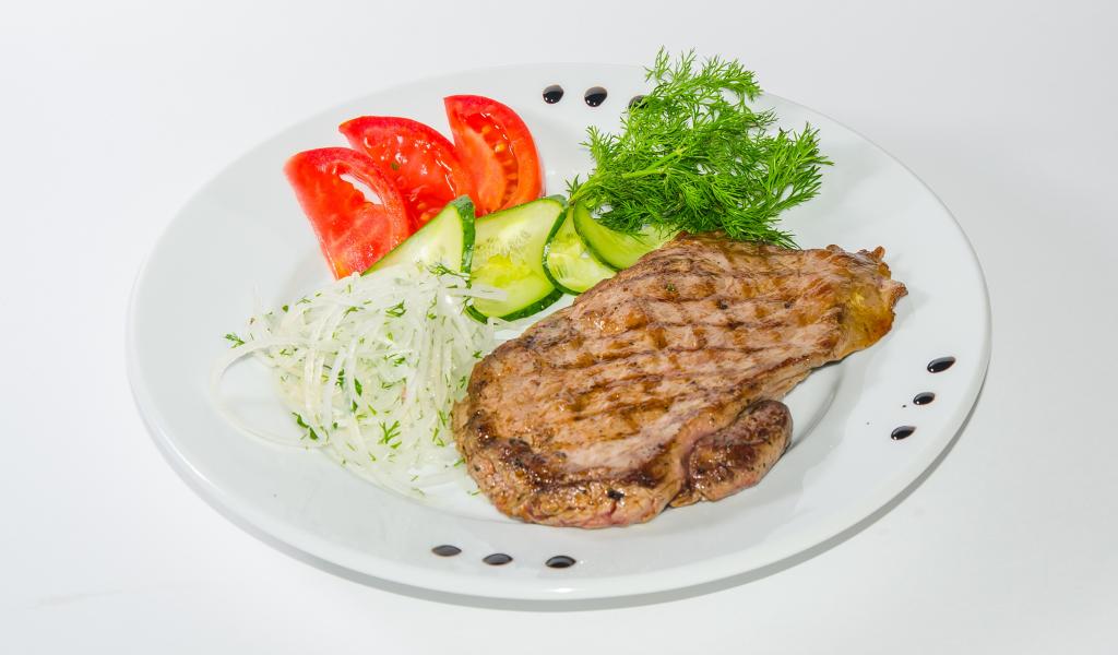 Обои Кусок курицы с овощами на белой тарелке