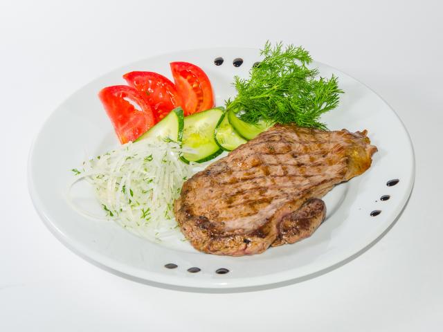 Обои Кусок курицы с овощами на белой тарелке