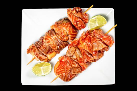 Обои Шашлык на шпажках на белой тарелке с лимоном