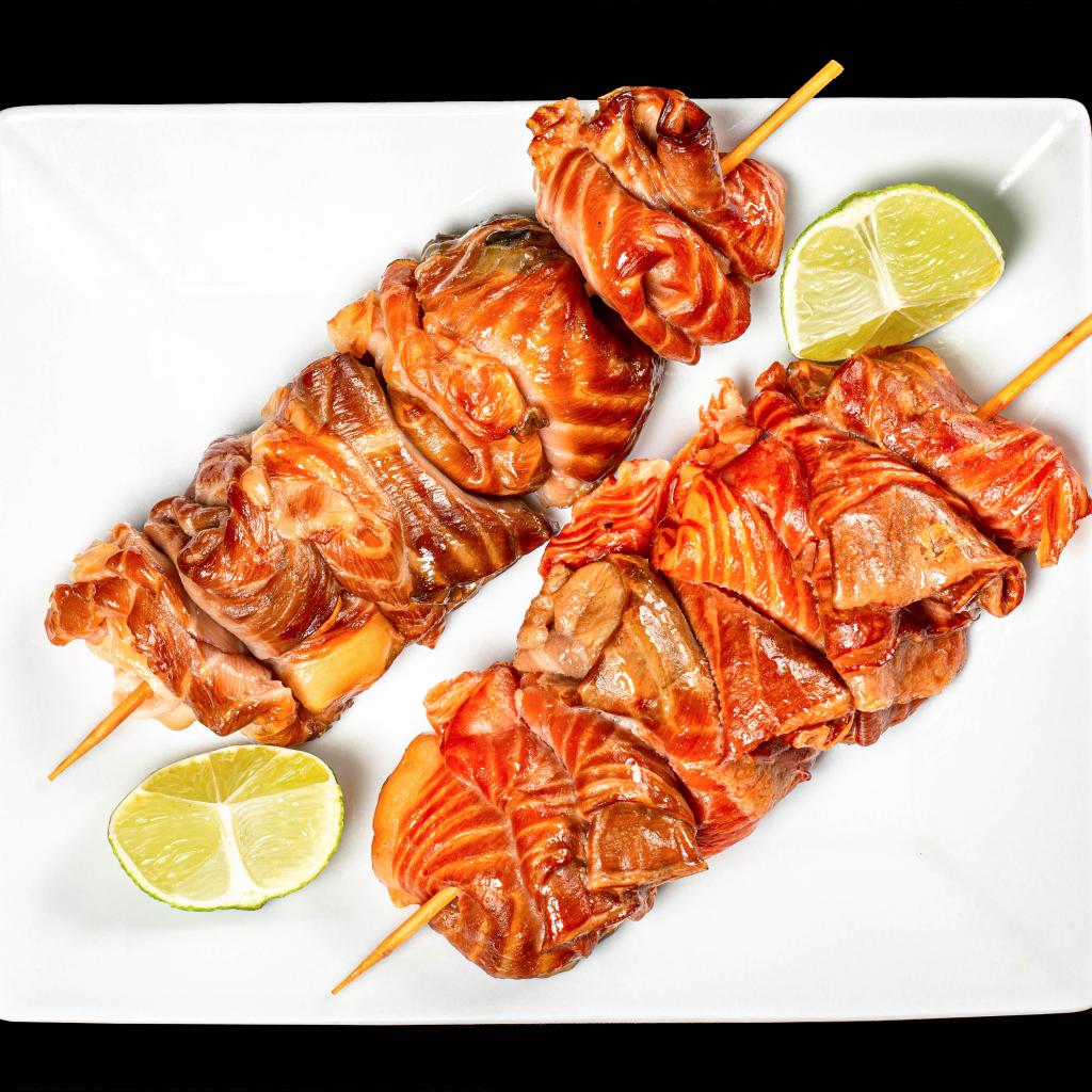 Обои Шашлык на шпажках на белой тарелке с лимоном