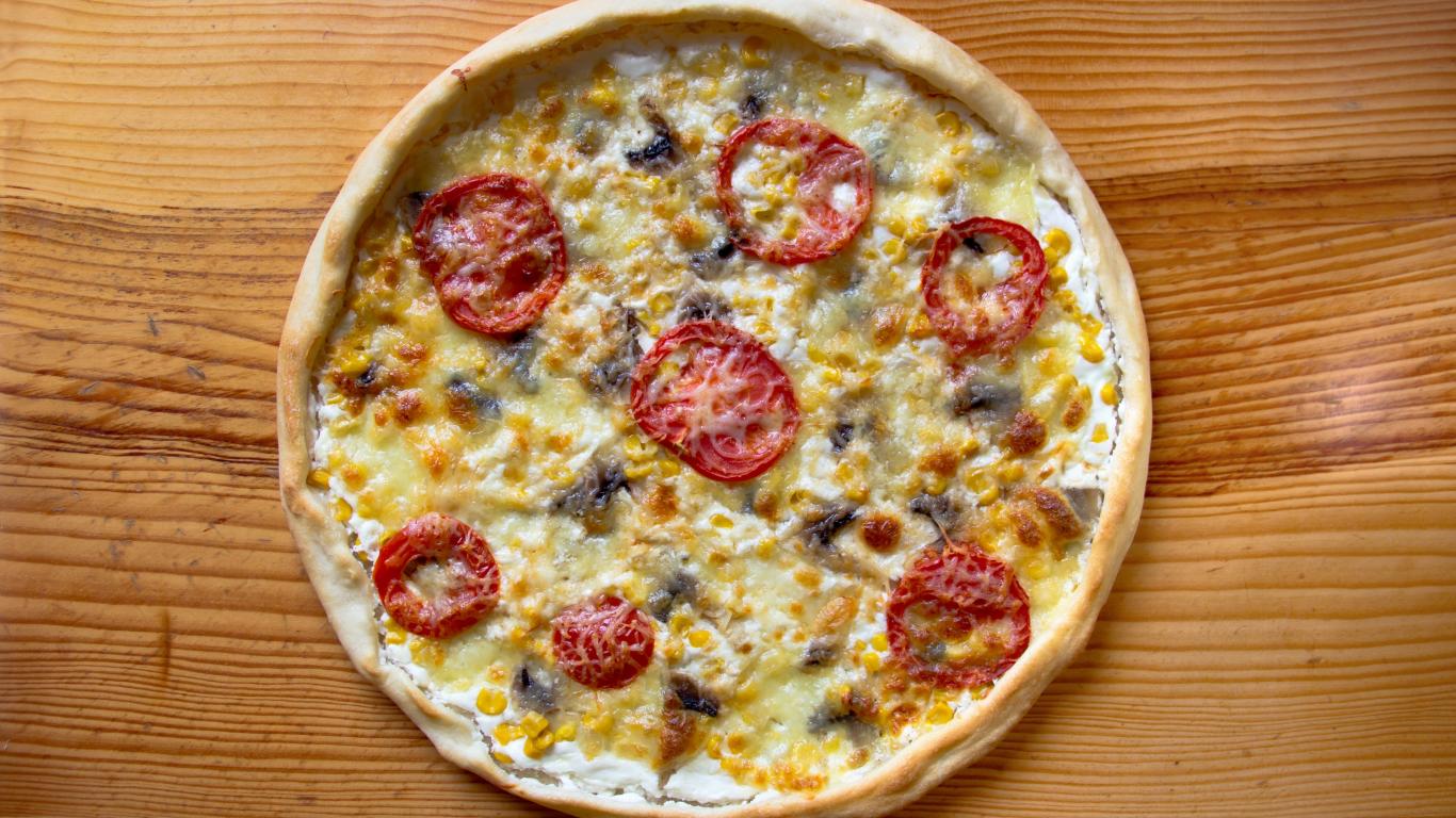 Обои Итальянская пицца с помидорами и сыром на столе