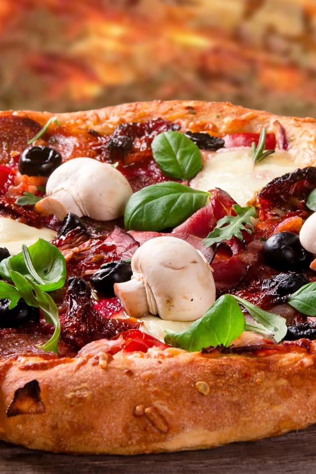 Обои Аппетитная пицца с колбасой, беконом и грибами