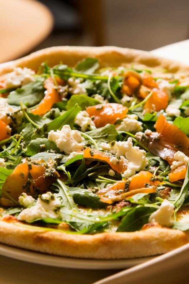 Обои Аппетитная пицца с рыбой и зеленью на столе