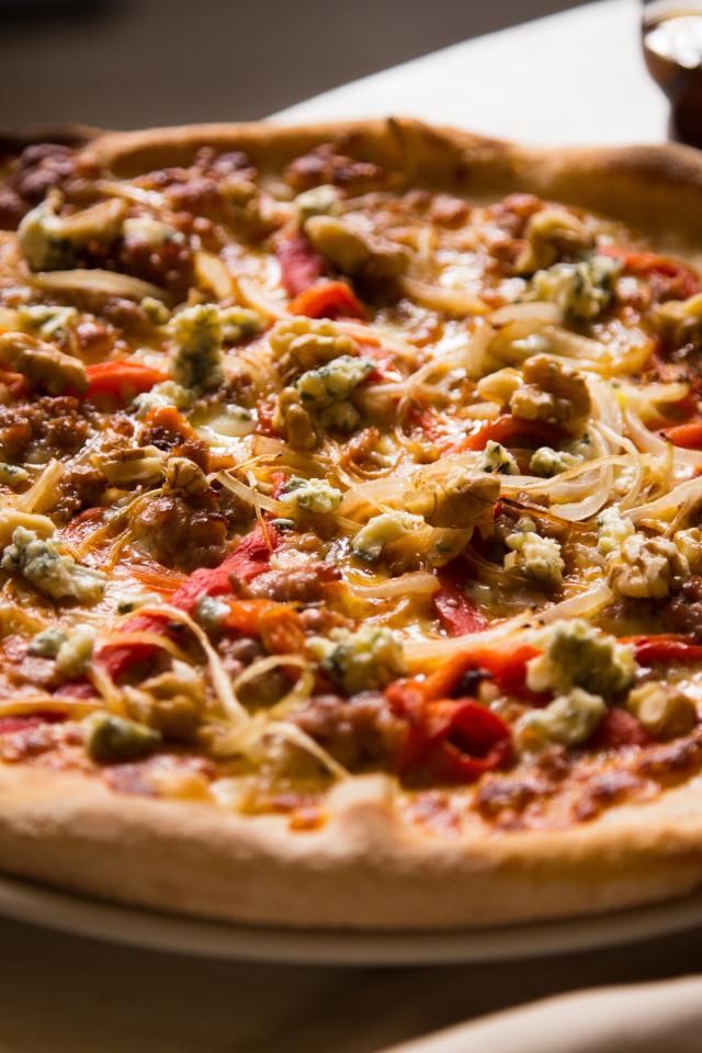 Обои Пицца с зажаренными краями на столе