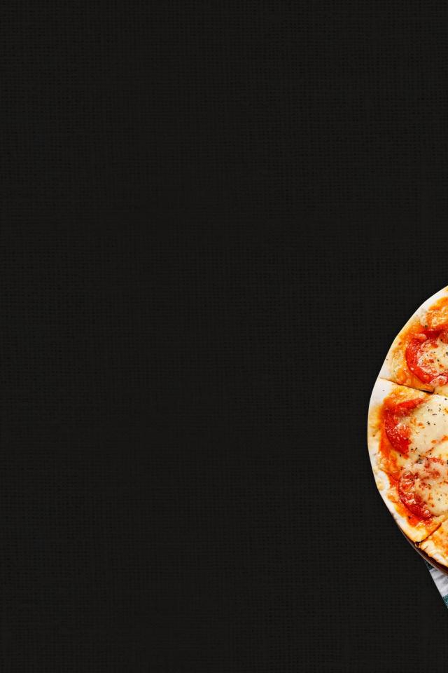 Обои Пицца с колбасой и сыром на столе с полотенцами