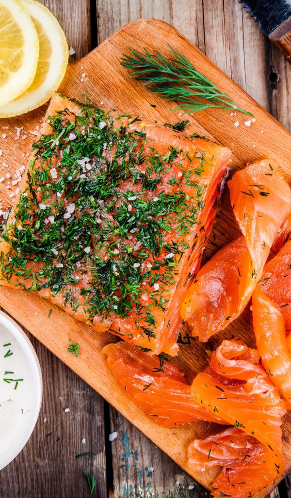 Обои Кусочек аппетитной красной рыбы с укропом