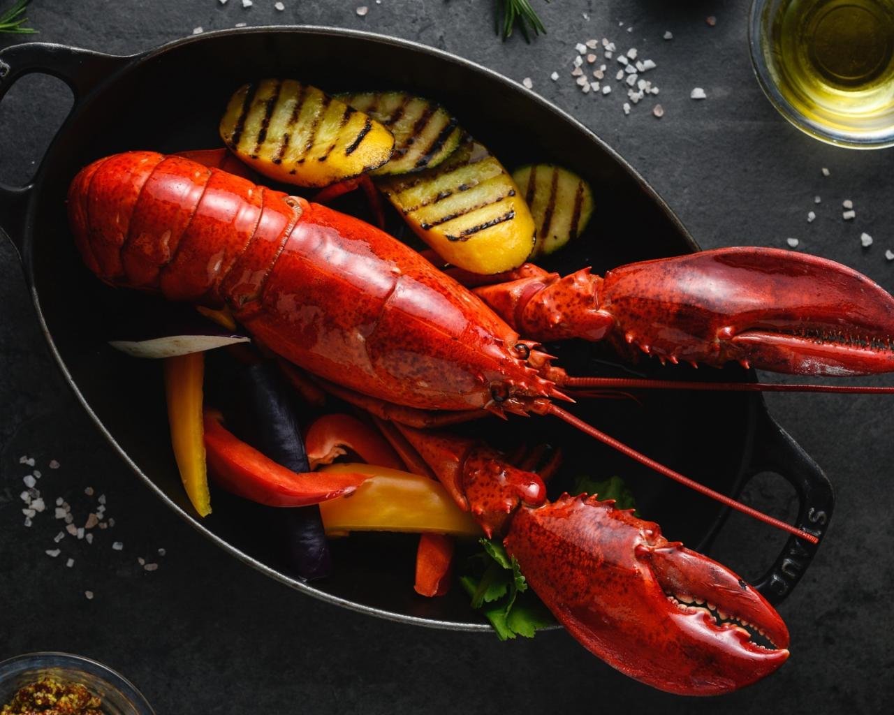 Обои Большой омар с овощами