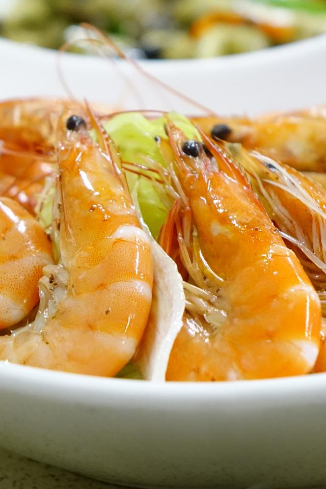 Обои Вареные креветки в тарелке