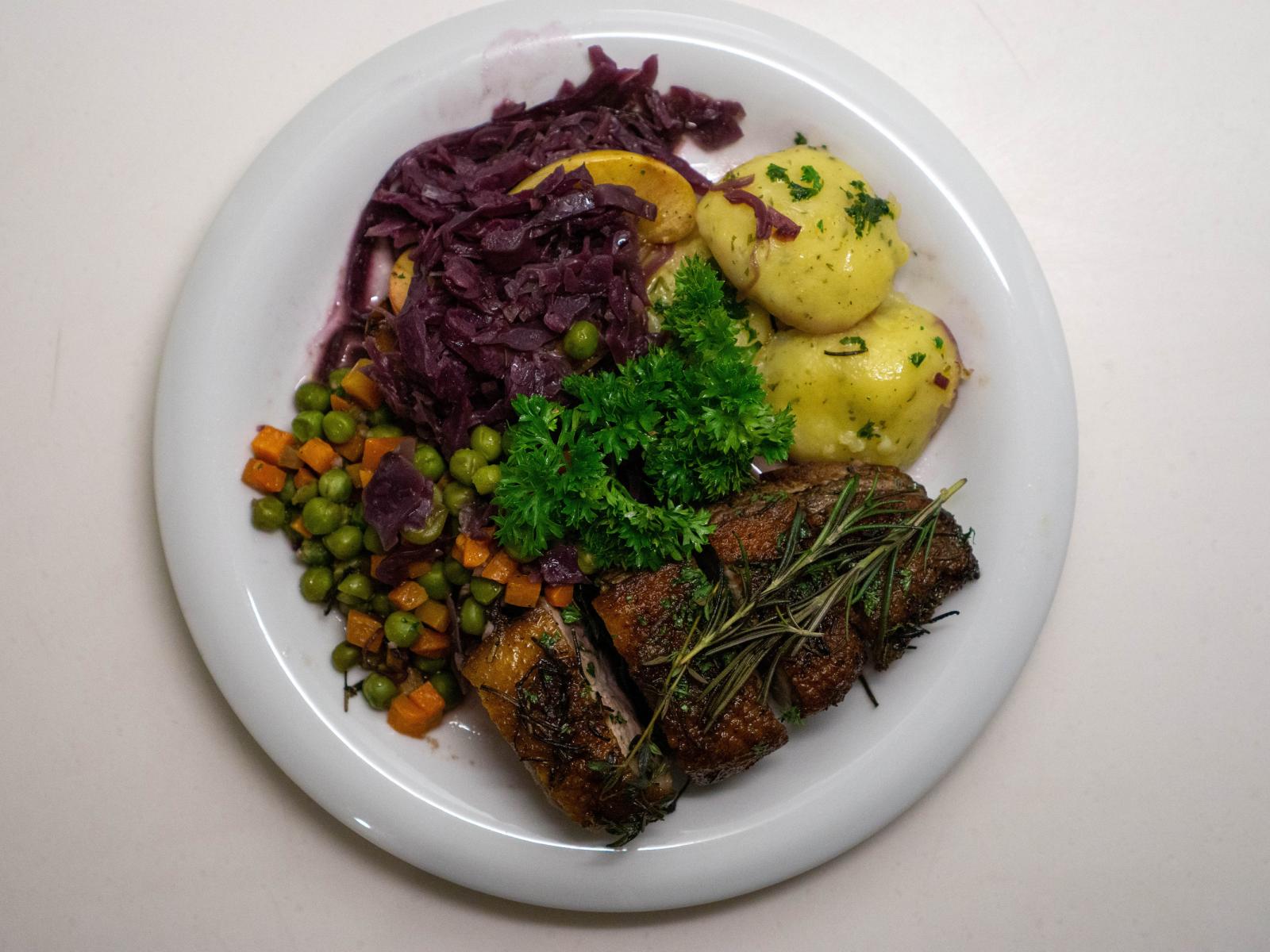 Обои Картофель на тарелке с рыбой и салатом