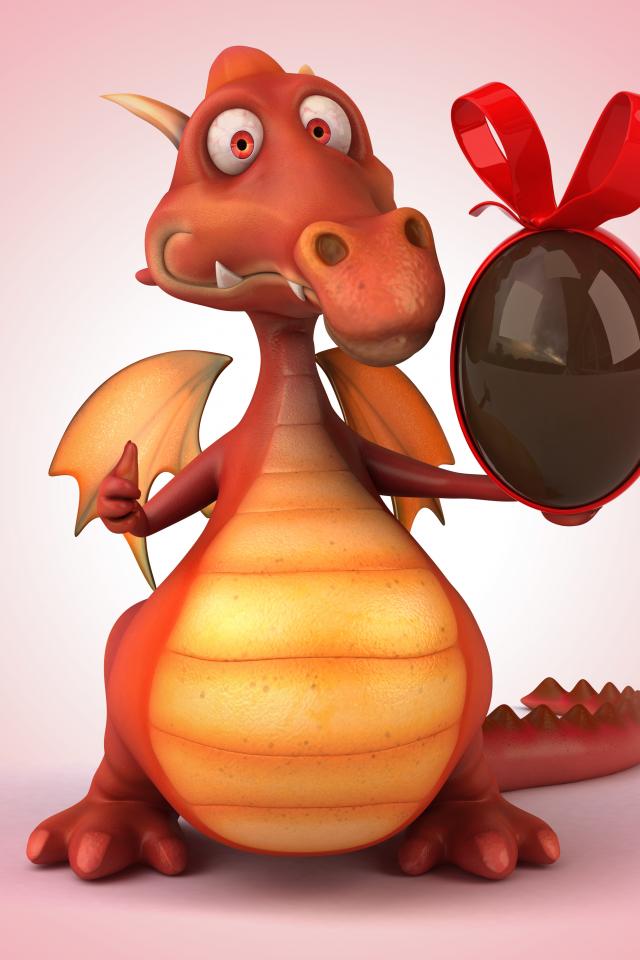 Обои Красный дракончик с шоколадным яйцом в лапе