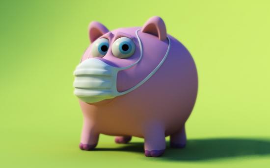 Обои Свинья копилка с маске от коронавируса