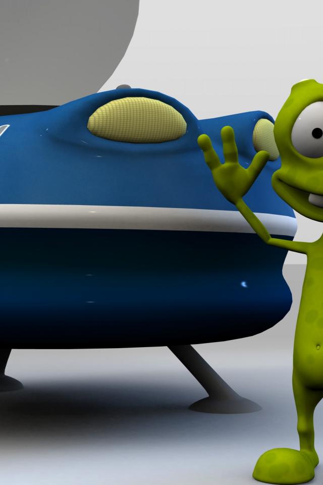 Обои Зеленый инопланетянин у космического корабля
