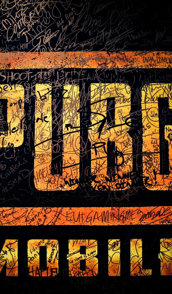 Обои Логотип компьютерной игры PUBG MOBILE на черном фоне