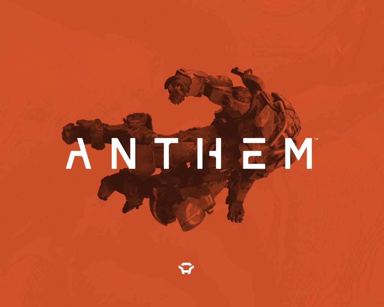 Обои Логотип компьютерной игры Anthem, 2019 на оранжевом фоне