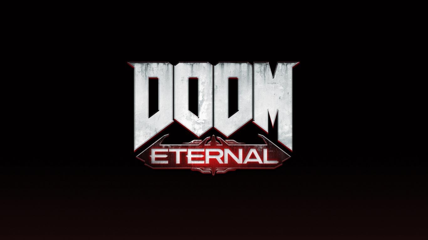 Обои Логотип новой компьютерной игры DOOM Eternal на черном фоне