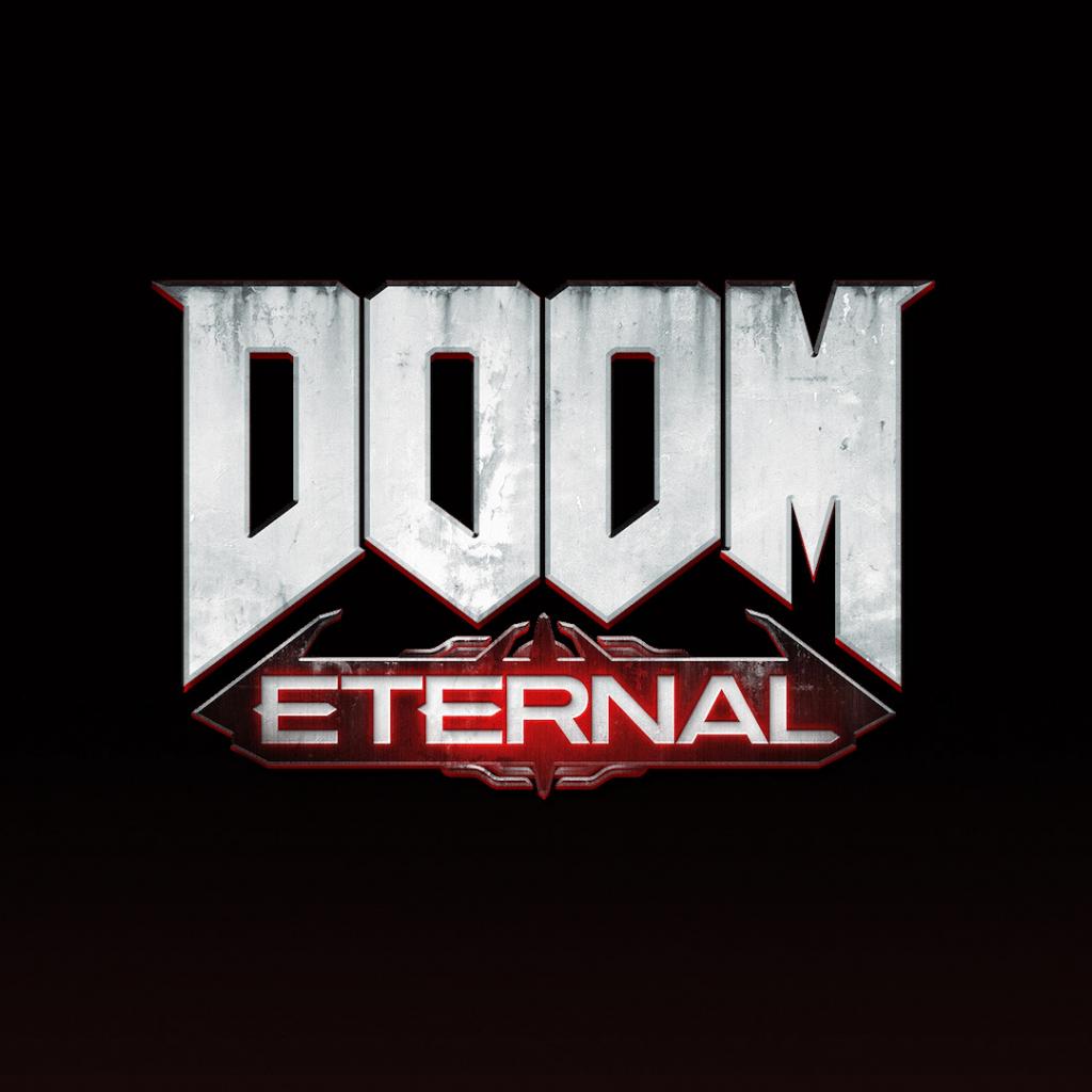 Обои Логотип новой компьютерной игры DOOM Eternal на черном фоне