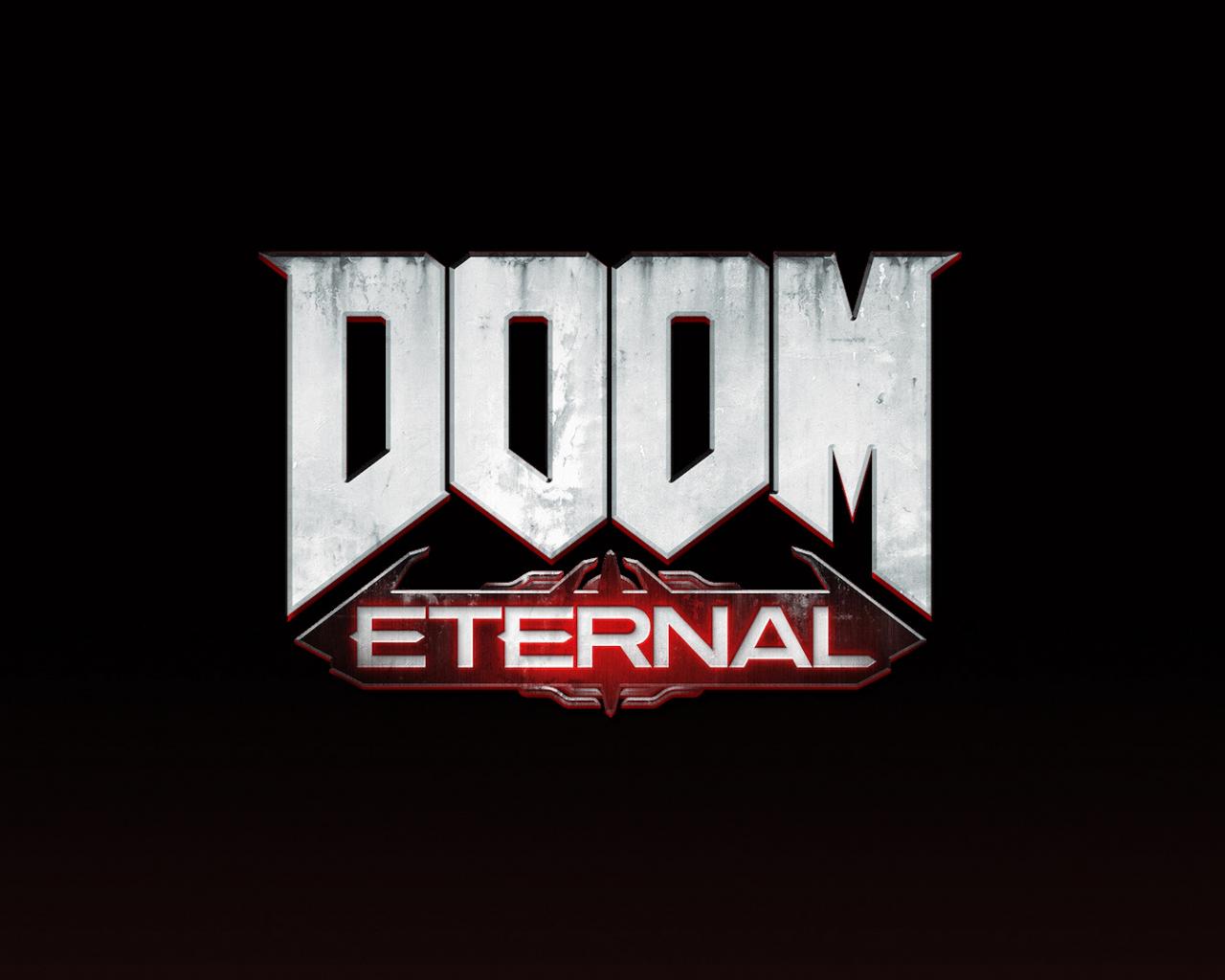 Обои Логотип новой компьютерной игры DOOM Eternal на черном фоне