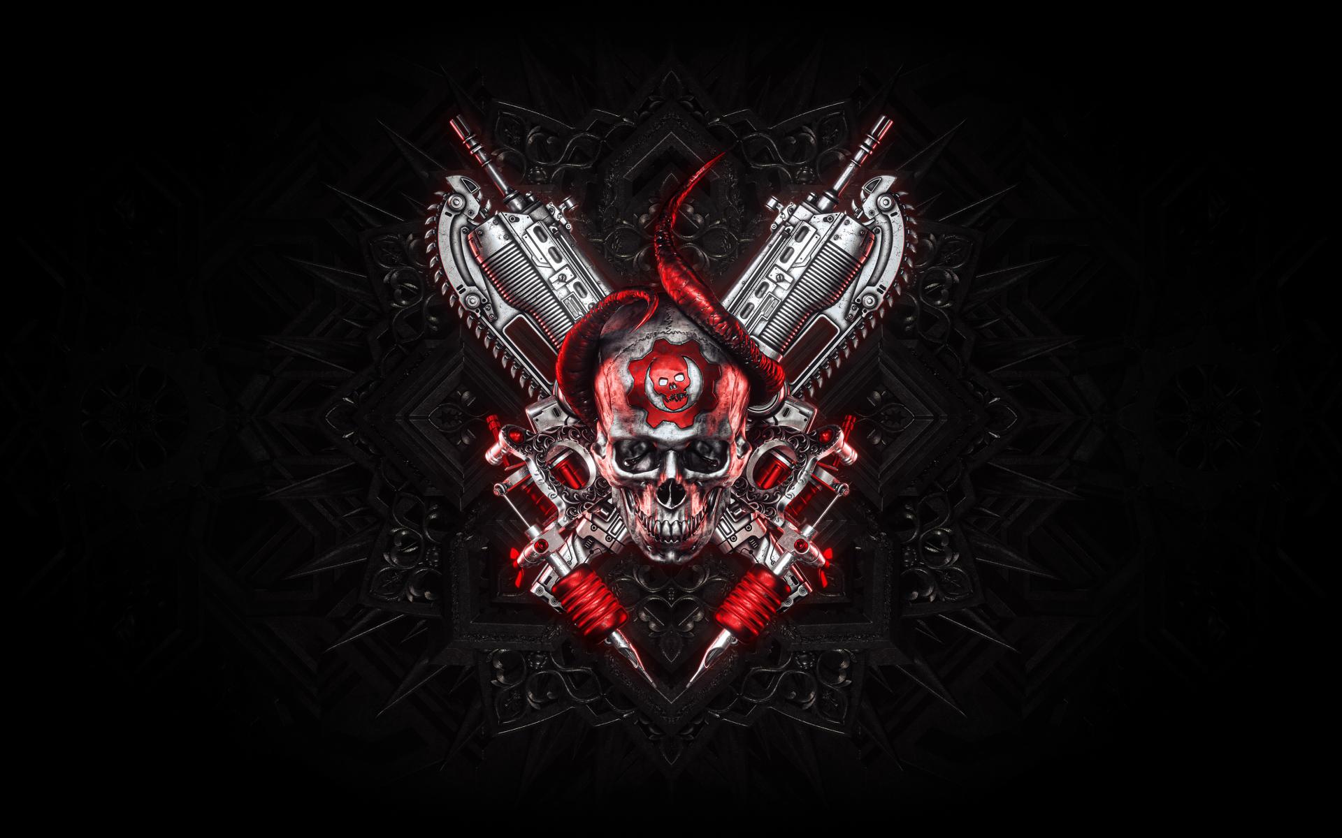 Обои Череп на черном фоне компьютерная игра Gears 5