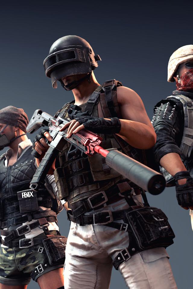 Обои Персонажи компьютерной игры PUBG на сером фоне
